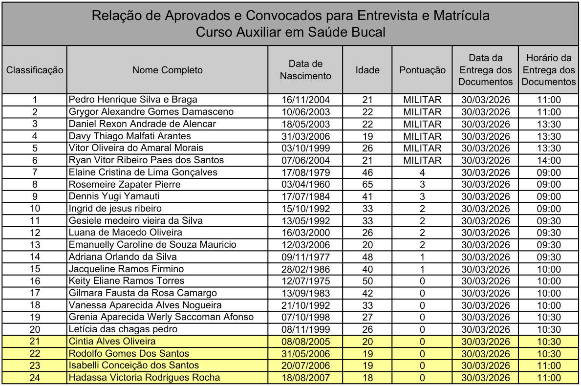 Convocação para o Curso de Auxiliar em Saúde Bucal no GSAU-SJ