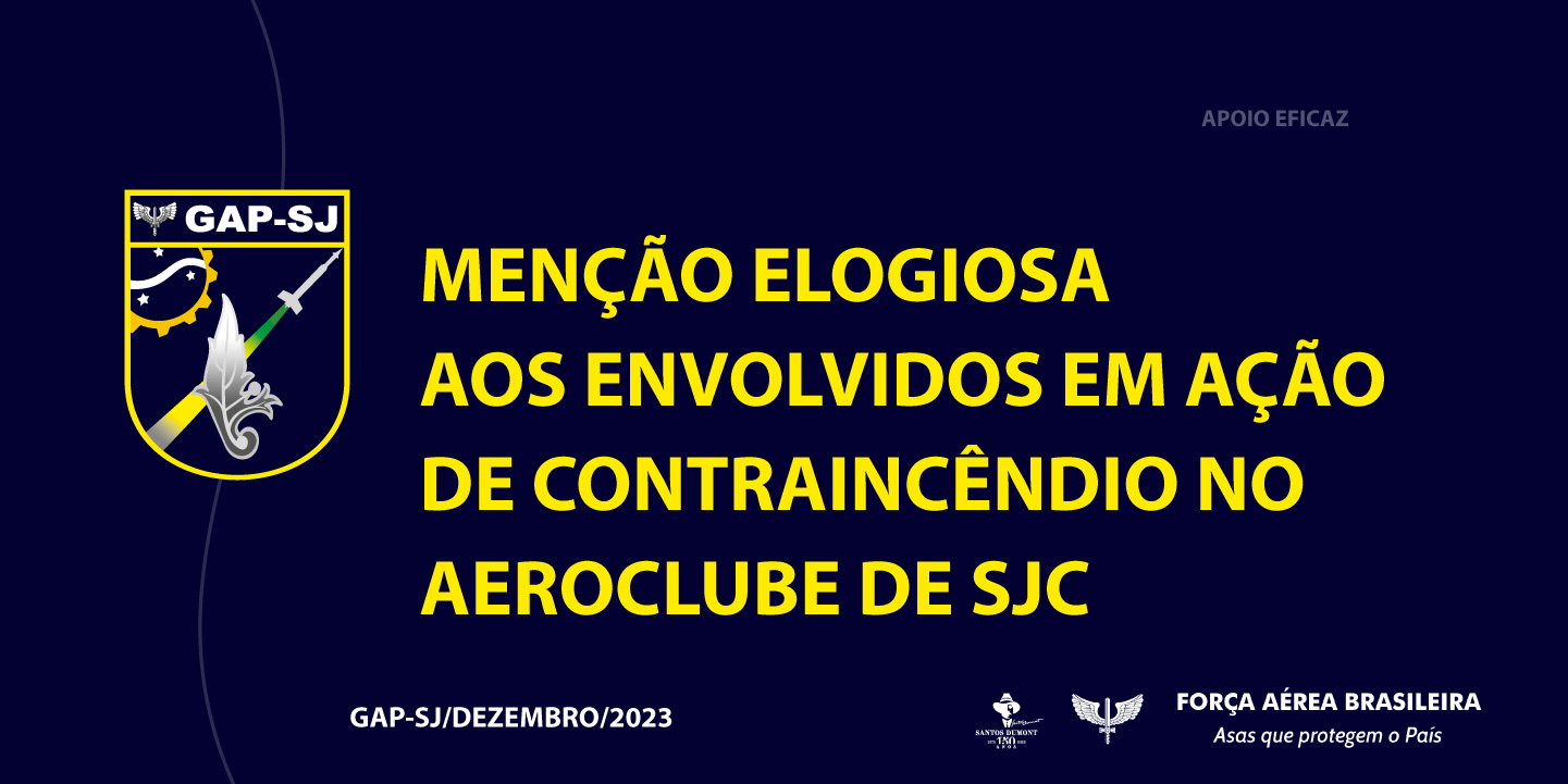 Externo a quem possa interessar o meu agradecimento pessoal, reconhecimento e gratidão ao Maj ENG Rodrigo, Ten Eng Bento, Ten Eng Rai, às equipes da DIE e GSD-SJ, bem como a todos os voluntários, em razão do empenho, engajamento e dedicação empregados nos dias 28 e 29 de dezembro de 2023, visando o combate ao incêndio decorrente da queda de um balão nas imediações do Aeroclube de São José dos Campos, localizado na área da GUARNAE-SJ. Foram mais de 24 horas de trabalho desde as 8 h do dia 28 até às 11h do dia 29.