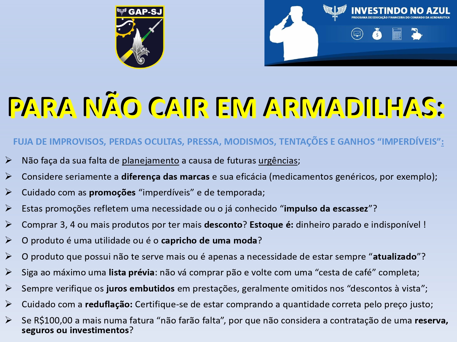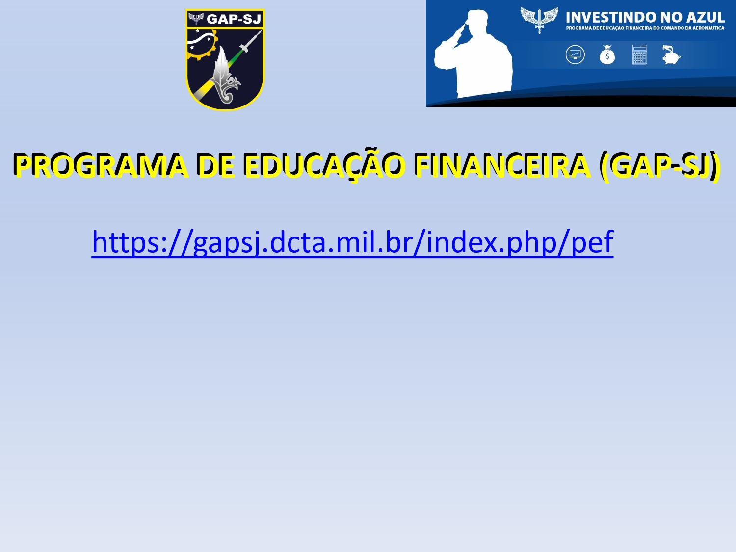O Programa de Educação Financeira (PEF) é uma ferramenta de sistematização e ampliação das ações já desenvolvidas pelo Serviço Social das Organizações Militares da Força Aérea no país, visando alinhar-se às diretrizes do Comando-Geral de Pessoal(COMGEP), que tem a missão de desenvolver ações para incentivar e contribuir na situação socioeconômica e financeira da Família Aeronáutica.